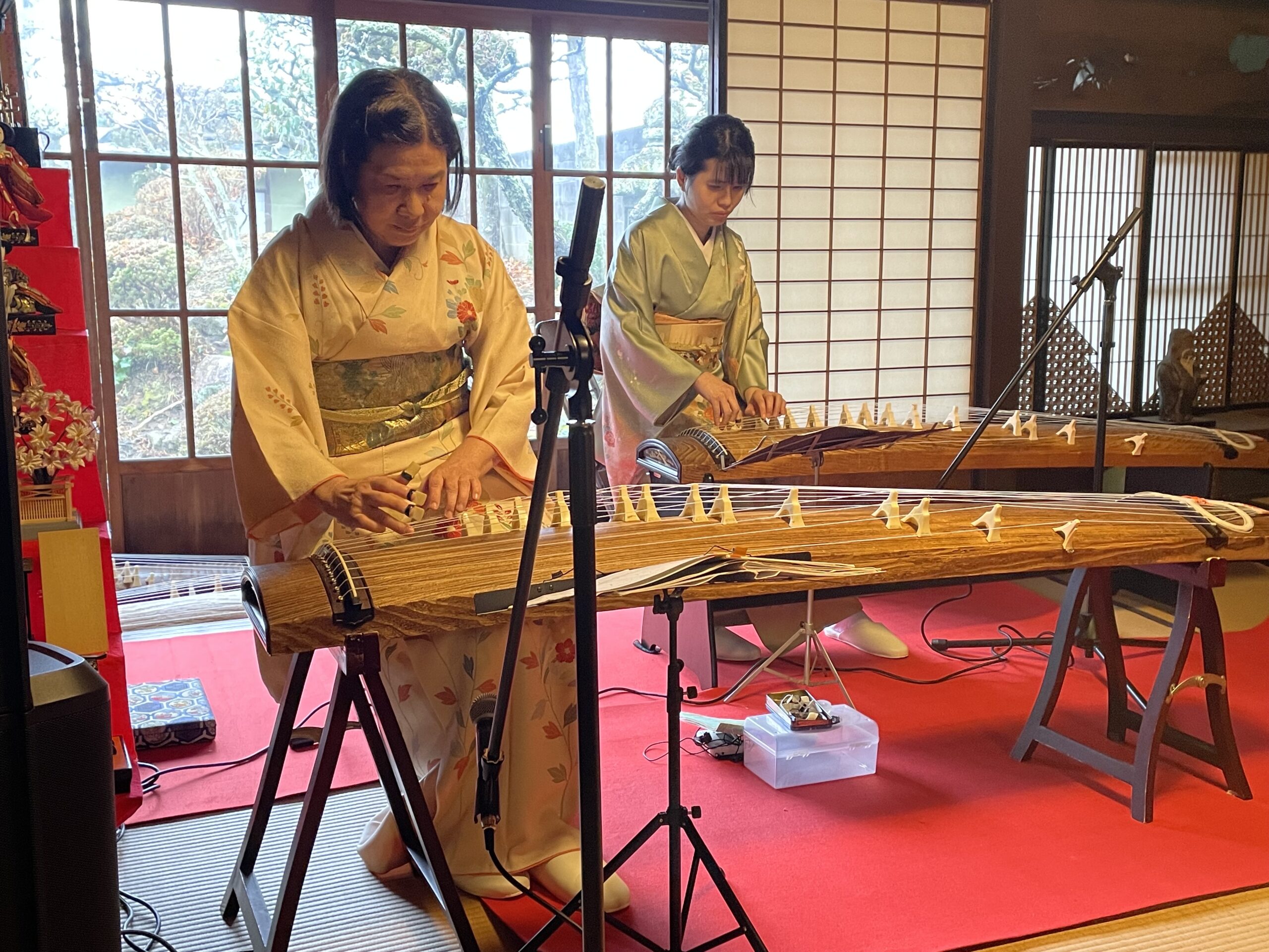 歴史を重ねた太い梁や、静かに佇む畳の空間に身を置くと、不思議とお琴の音色もいつもより深く、たおやかに響くような気がしました。